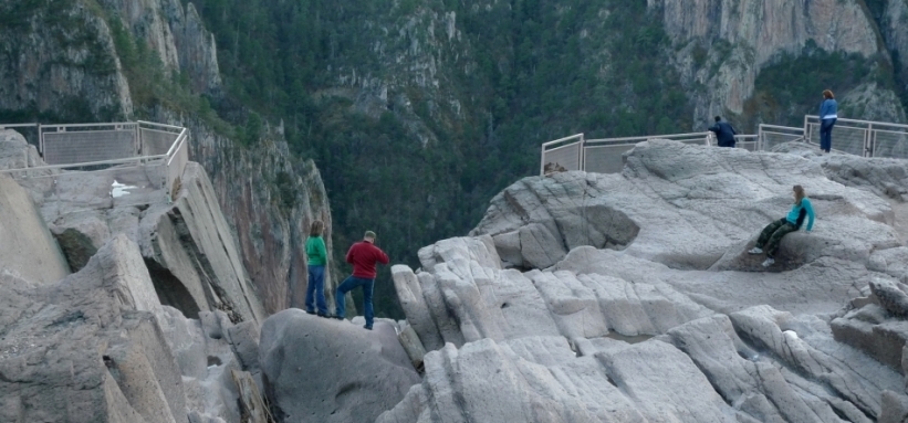 Sobre el mirador se tiene una vista impresionante del lugar, así como de la extraordinaria profundidad de las paredes de la barranca que rebasan los 1,600 metros de asombrosa verticalidad.